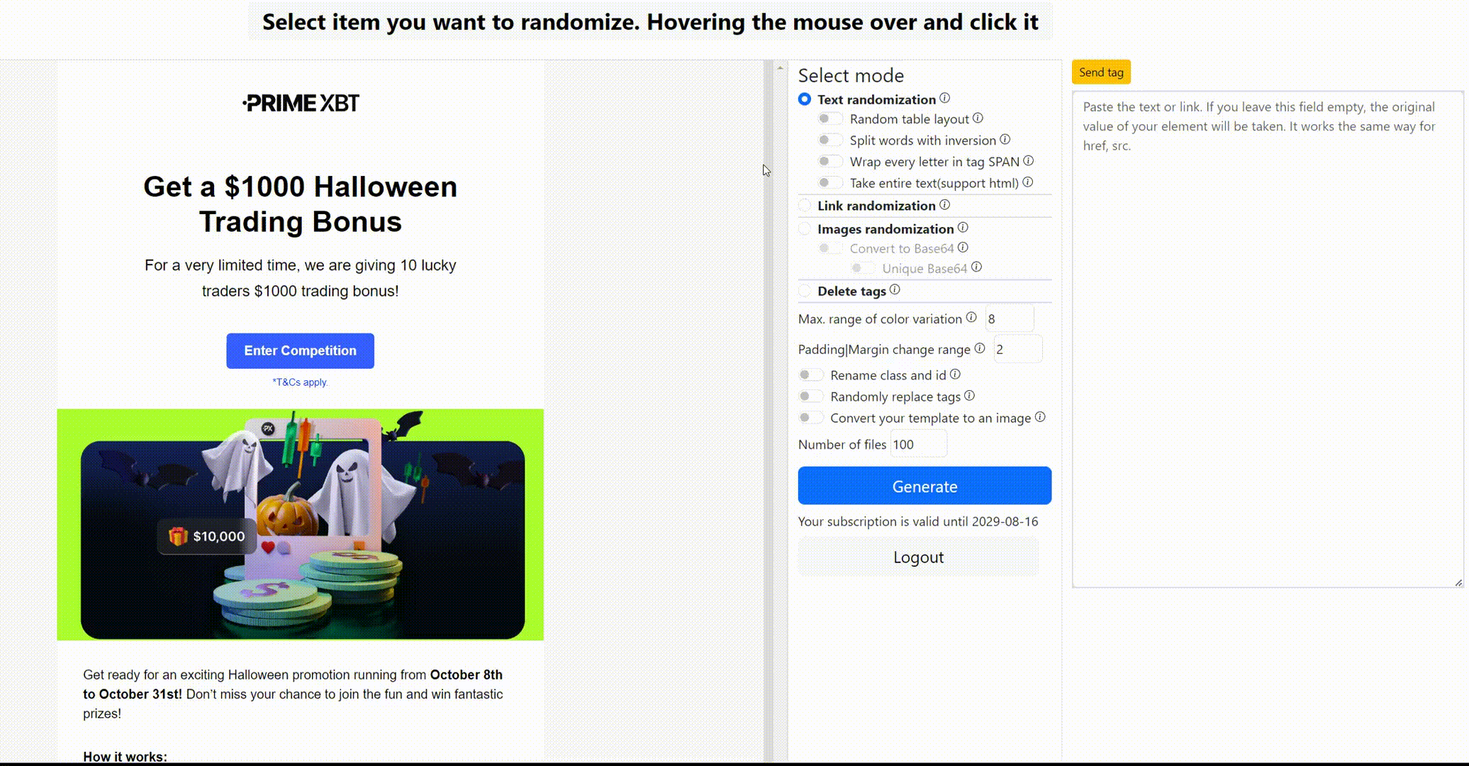 Our basic randomization engine allows multiple changes to your HTML while keeping the visual appearance intact: